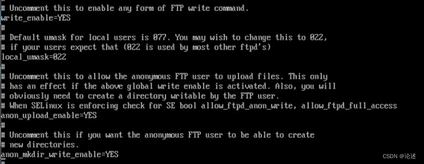 vi /etc/vsftpd/vsftpd.conf ,将下图红圈位置原来#号删除。