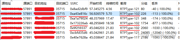 H264的PT是102,重发流PT是121。