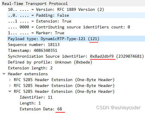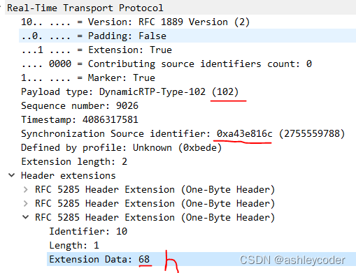 RTP扩展头,Identifier是10,68是h,表示high那路,ssrc是0xa43e816c。服务器就知道具体是那路simulcast了。