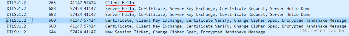 客户端先发Client Hello,作为DTLS Client,主动发送协商。