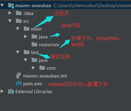 src/main/java约定用于存放源代码,src/main/test用于存放单元测试代码,