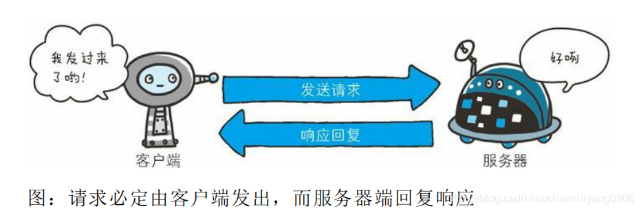 请求访问文本或图像等资源的一端称为客户端,而提供资源响应的一端称为服务器端。