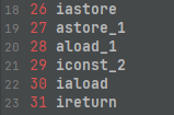 - iastore 将栈顶int型数值存入指定数组的指定索引位置。