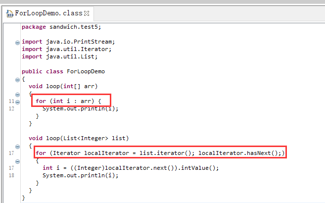 数组:它将代码解释成了传统的变量方式,即for(int i;i<length;i++) 的形式。
