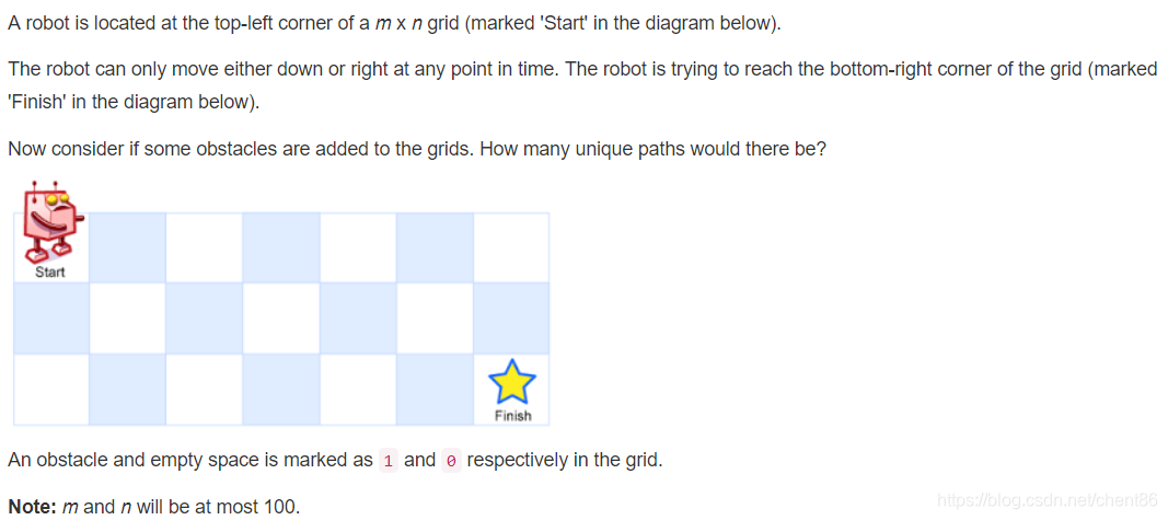 需要注意到题目描述中:机器人只能向下或者向右移动,这一点大大降低了难度。所以可以列出转移方程: