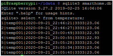 在《树莓派安装使用数据库SQLite》一文中我们已经创建了SQLite的数据库文件:smarthome.db。