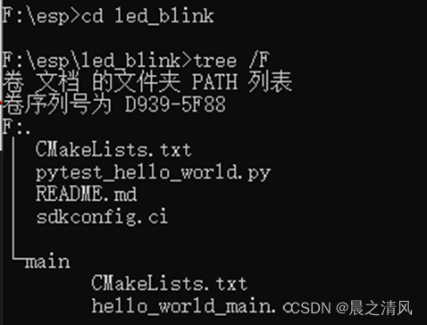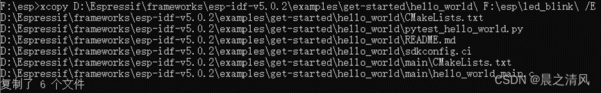 xcopy D:\Espressif\frameworks\esp-idf-v5.0.2\examples\get-started\hello_world\ F:\esp\led_blink\ /E