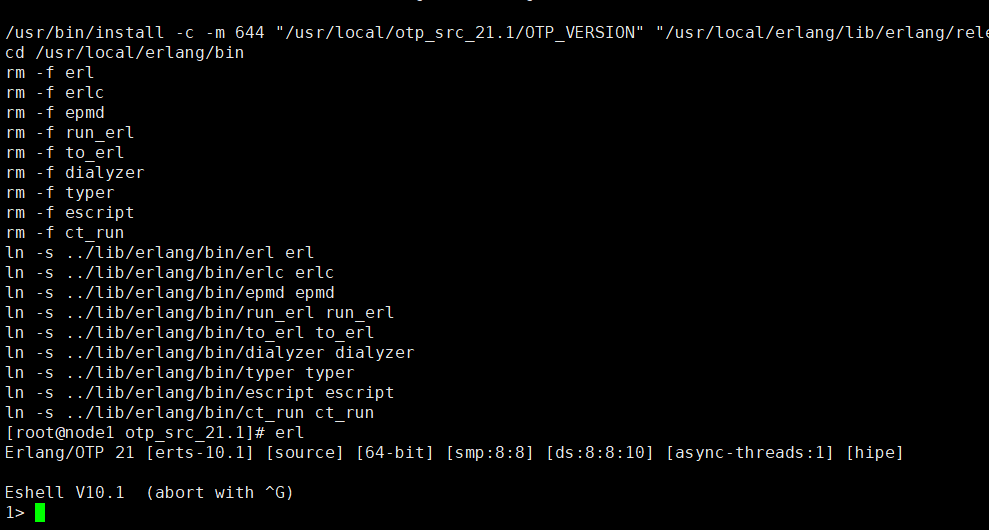 7:链接:ln -s /usr/local/erlang/bin/erl /usr/local/bin/
