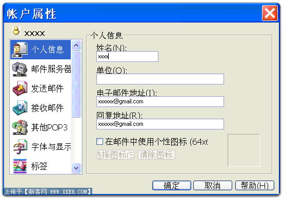 - 选择"个人信息",输入您的姓名,作为外发邮件"发件人:"字段中显示的内容。