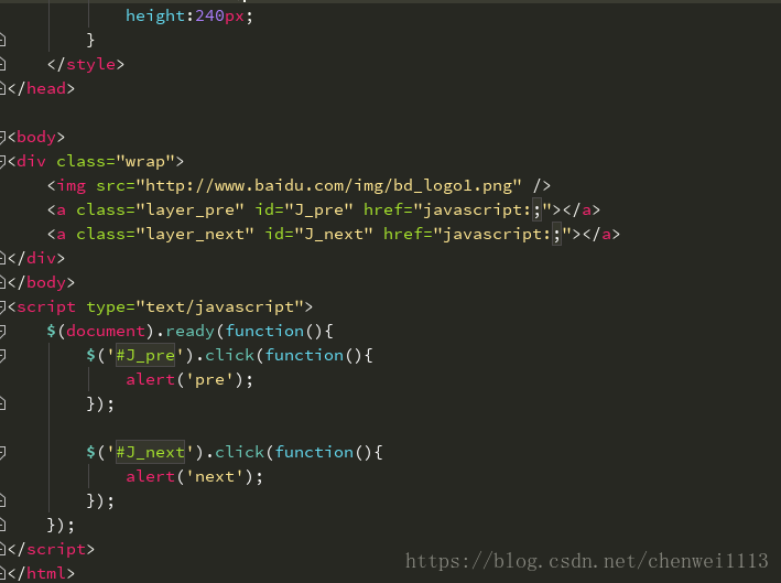 来查看了一下层级关系,实际结果是#J_pre和#J_next确实在最上方,而且加了背景色之后就能正常触发alert事件了(至于是为什么就能触发了,未能得出结论,但肯定是ie的bug)