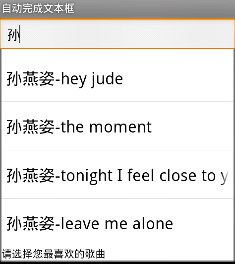 Android中的AutoCompleteTextView可以实现文本输入框的自动补全功能,和网页上的输入框使用Ajax时有点像,使用这个功能时,需指定一个adapter来设置补全的