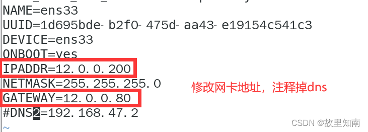 1 修改并重启网卡 vim /etc/sysconfig/network-scripts/ifcfg-ens33