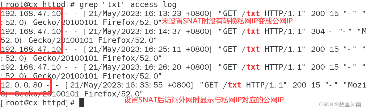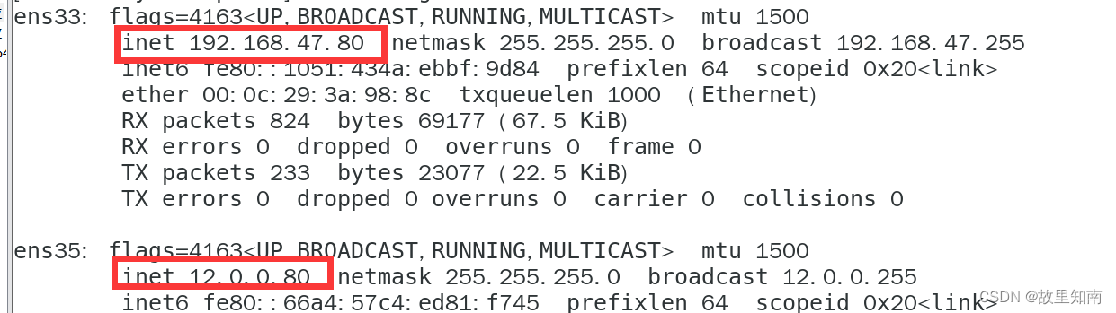 [root@cx yum.repos.d]# iptables -t nat -A POSTROUTING -s 192.168.47.0/24 -o ens35 -j SNAT --to 12.0.0.80