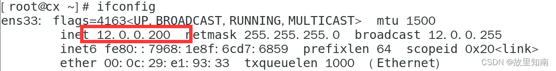 yum -y install net-tools #若没有 ifconfig 命令可提前使用 yum 进行安装