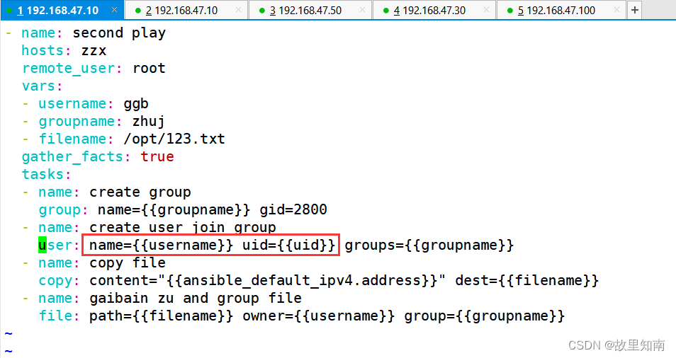 ansible-playbook test1.yaml -e "username=nginx" #在命令行里定义变量