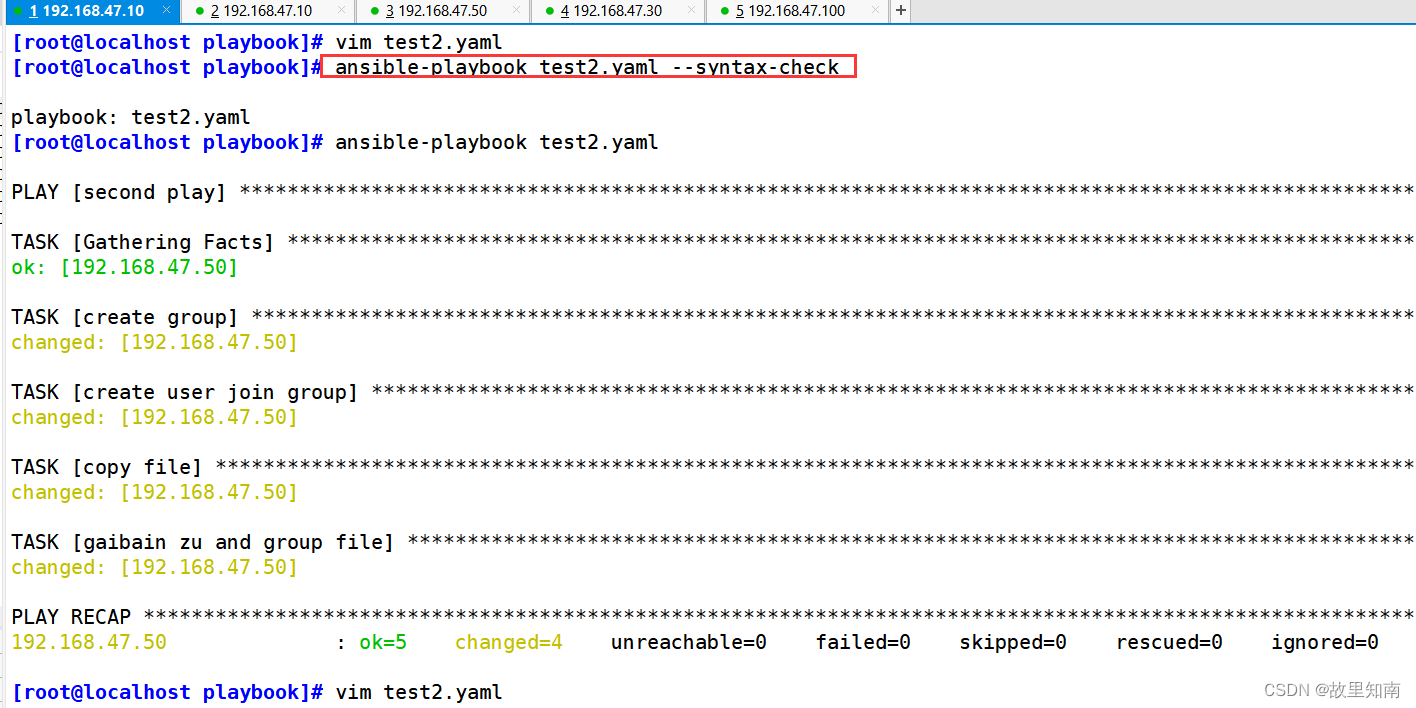 ansible-playbook test1.yaml --syntax-check #检查yaml文件的语法是否正确