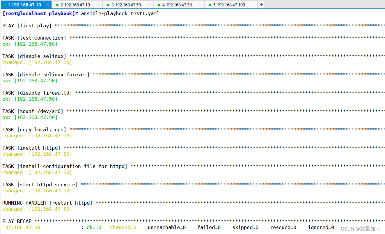 ansible-playbook test1.yaml --start-at-task='install httpd' #指定从某个task开始运行