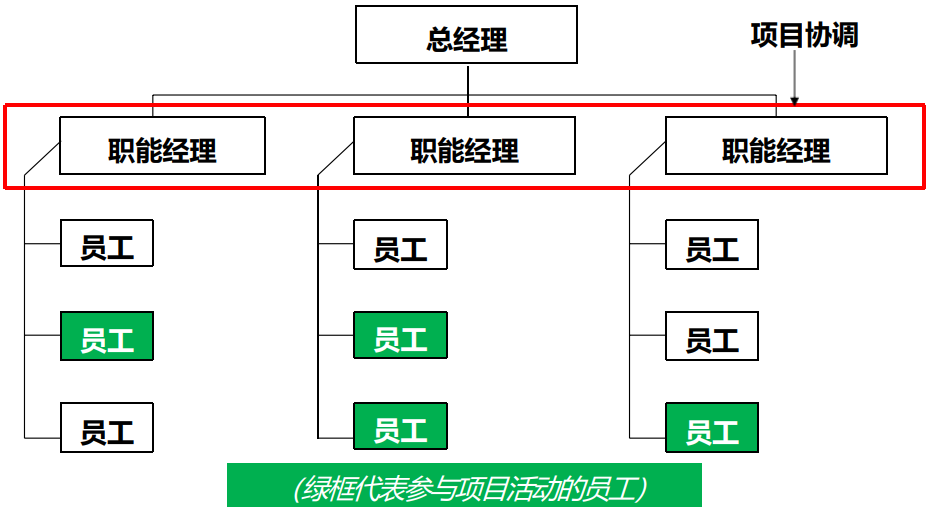 - 缺点:职能部门利益优于项目,项目间的跨部门沟通困难,妨碍客户参 与项目。项目经理对项目没有足够的控制授权,分层级的决策影 响对问题的反应速度