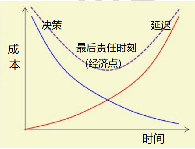 - 最后责任时刻( Last Responsible Moment ):当你再不做出决策时,延迟的成本就会高于决策的成本。