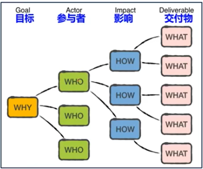 - 影响地图是2012年由敏捷大师Gojko Adzic提出的。通过结构化的显示,将业务目标(why)和产品功能(what)之间建立关联,让团队清晰地看到每一个功能对业务目标是怎样影响的,确保每一个功能都是有价值的