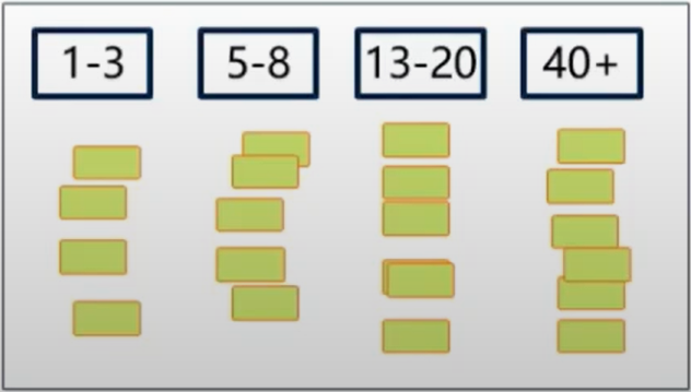 - 亲和估算(Affinity estimating将产品待办项规模相近的放在一起,组成一组。例如使用类似T恤衫尺码(如小号、中号、大号和特大号)作为估算尺度