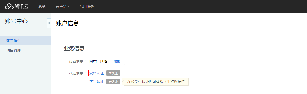 您也可以通过进入 帐号中心 ,单击【实名认证】进行认证。