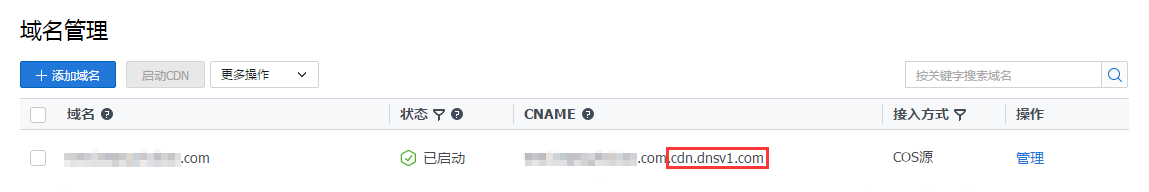 1.域名配置完成后,系统会为您分配对应的 CNAME ,以 .cdn.dnsv1.com 为后缀。