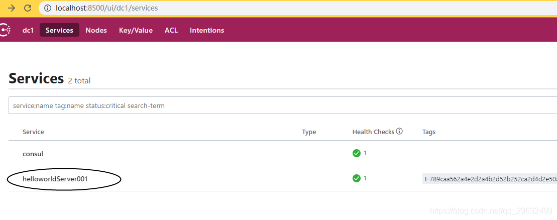 3. 通过浏览器输入再次输入:http://localhost:8500, 查看当前已有服务: