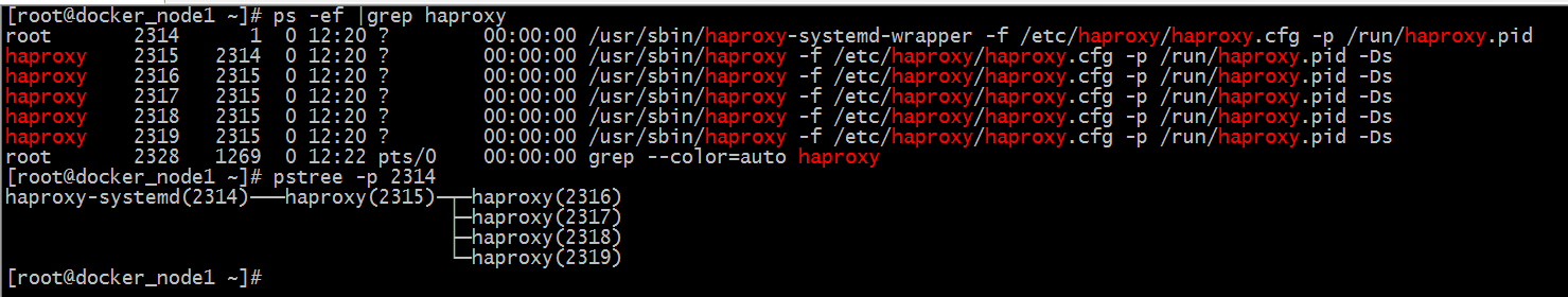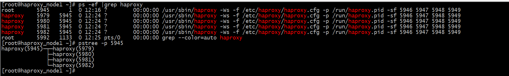 提示:以上是haproxy1.8.20上配置使用多进程,启动进程情况,我们可以看到haproxy进程的父进程都是5945;