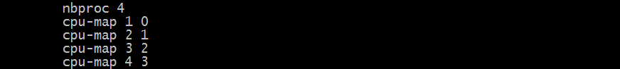 提示:以上配置表示指定haproxy的进程数为4个,第一个进程绑定到0号核心上,第二个进程绑定到1号核心上,依次类推;如下