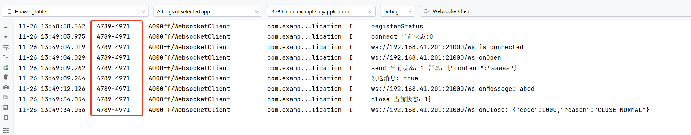 hilog.info(this.DOAMIN, this.TAG, `send 当前状态:${this.status} 消息:${msg}`);