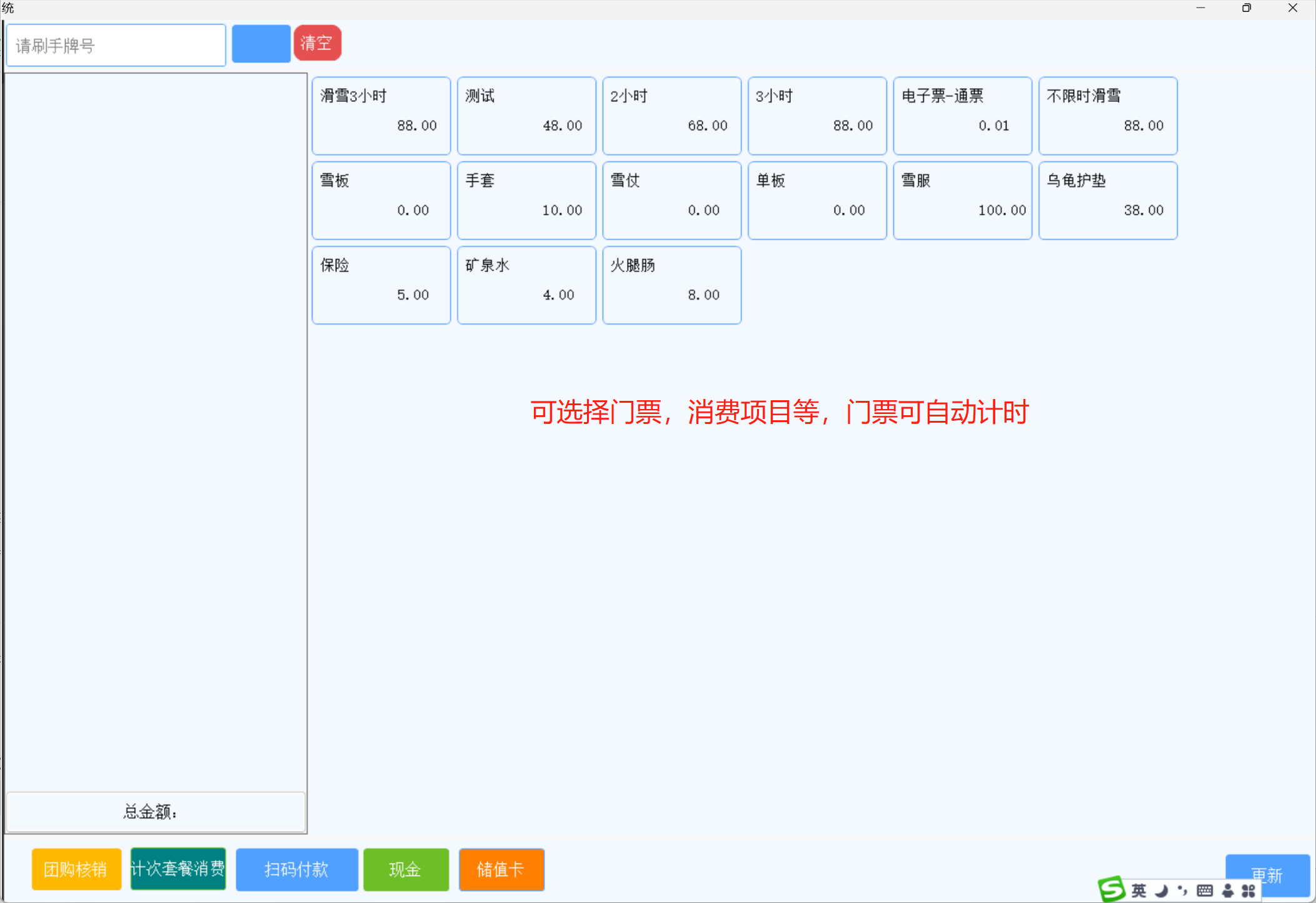 儿童乐园蹦床公园的特点:一般来说小孩子比较多,孩子在游玩过程中可能需要购买商品如饮料,水,零食之类的,家长有时侯也不一定一直在场,那么就要求系统能够收取押金,孩子可以直接跟据自己情况到前台购买,出场离店时押金原路退回
