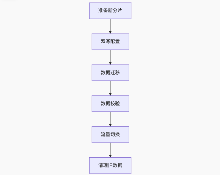 // 数据校验伪代码 List<Data> oldData = queryOldShard(shardKey); List<Data> newData = queryNewShard(shardKey); assert oldData.equals(newData); -