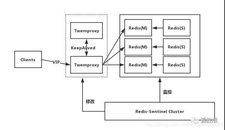 前端使用Twemproxy+KeepAlived做代理,将其后端的多台Redis实例分片进行统一管理与分配