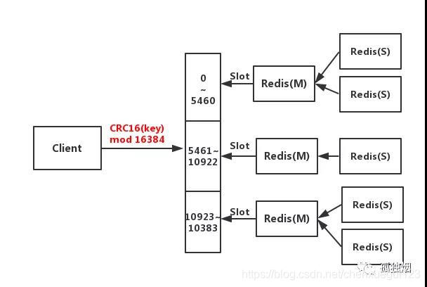 HASH_SLOT=CRC16(key) mod 16384,计算出映射到哪个分片上,然后Redis会去相应的节点进行操作