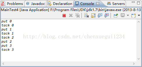 程序中是take8次,可见程序在第五次取的时候发生了阻塞