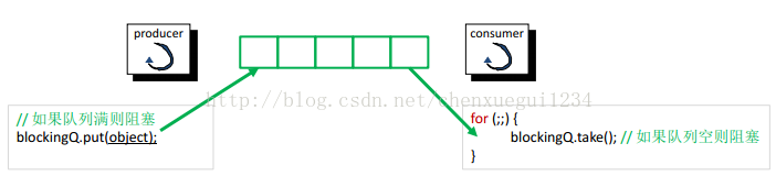 使用BlockingQueue的时候,尽量不要使用Queue继承下来的方法,否则就失去了Blocking的特性了。
