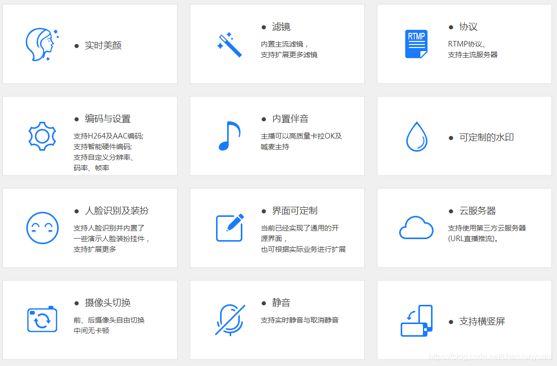 直播iOSSDK为iOS设备提供实时视频采集及多种滤镜效果,支持3G、4G、WIFI网络推流至云端处理,实现现场直播并加速分发,同时具备视频归档存储功能,不断优化视频处理能力。