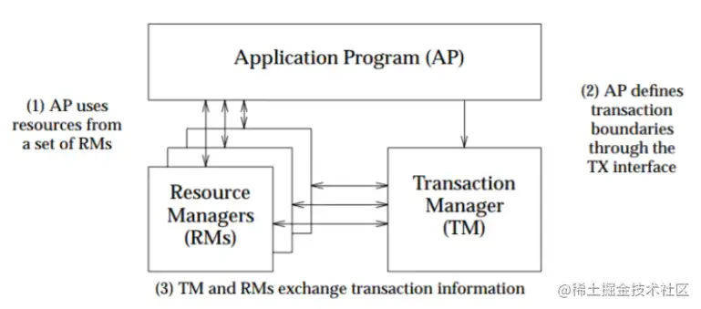 AP(Application Program):应用程序,主要是定义事务边界以及那些组成事务的特定于应用程序的操作。