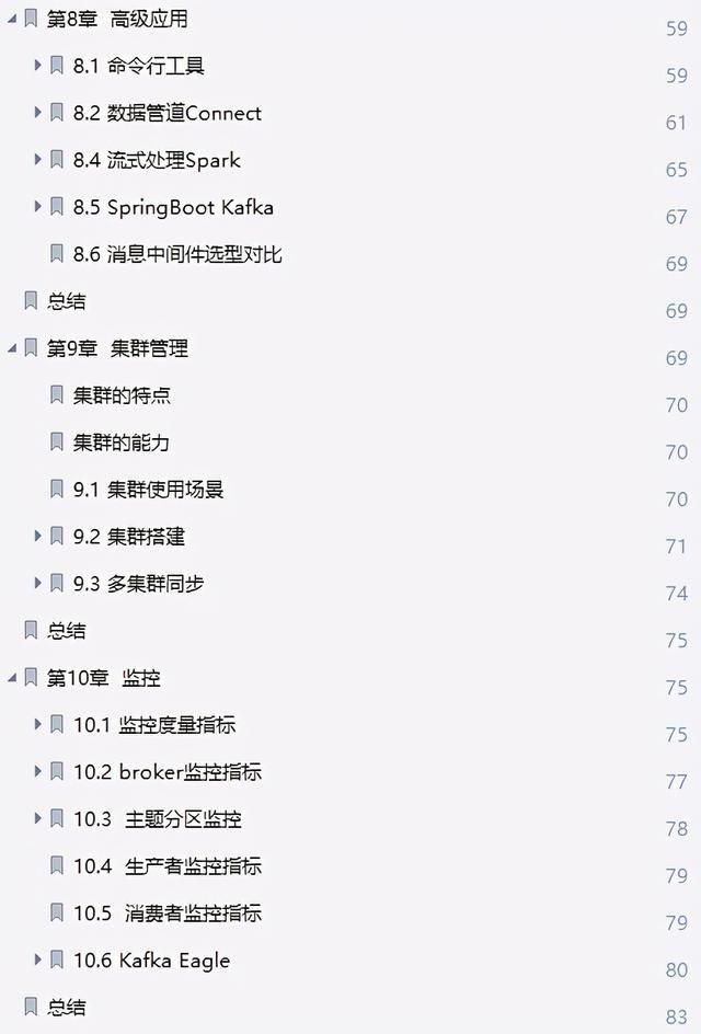 总之 Kafka 是个利器,值得一试!既然知道了为什么要学 Kafka,却还是有很多人无从下手,不知如何学习!在这分享这份Kafka从应用实战到源码进阶手册,由于篇幅原因,本文只展示了目录和内容截图,有需要学习的小伙伴可滑至文末!