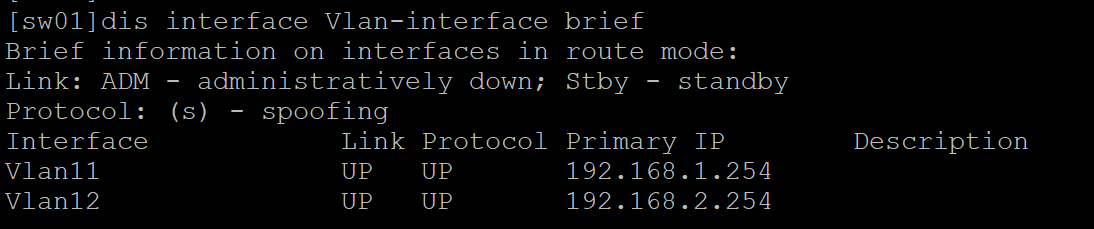 [sw01-Vlan-interface11]ip address 192.168.1.254 255.255.255.0