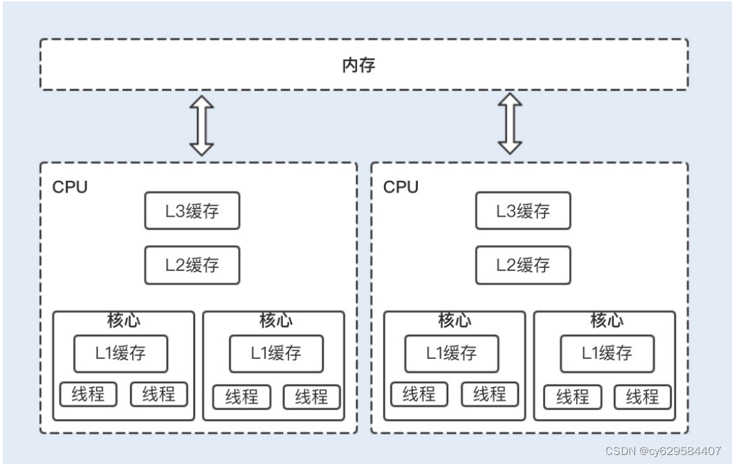 处理器和物理内存之间的通信速度要远慢于处理器间的处理