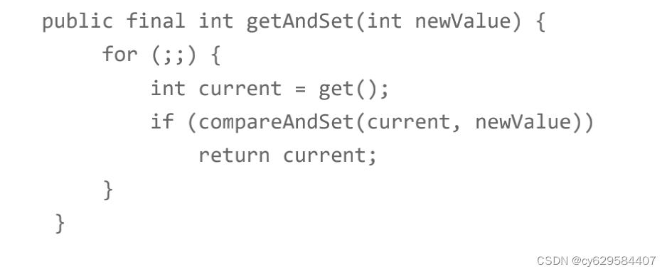 的 getAndSet 方法中使用了 for 循环不断重试 CAS 操作,