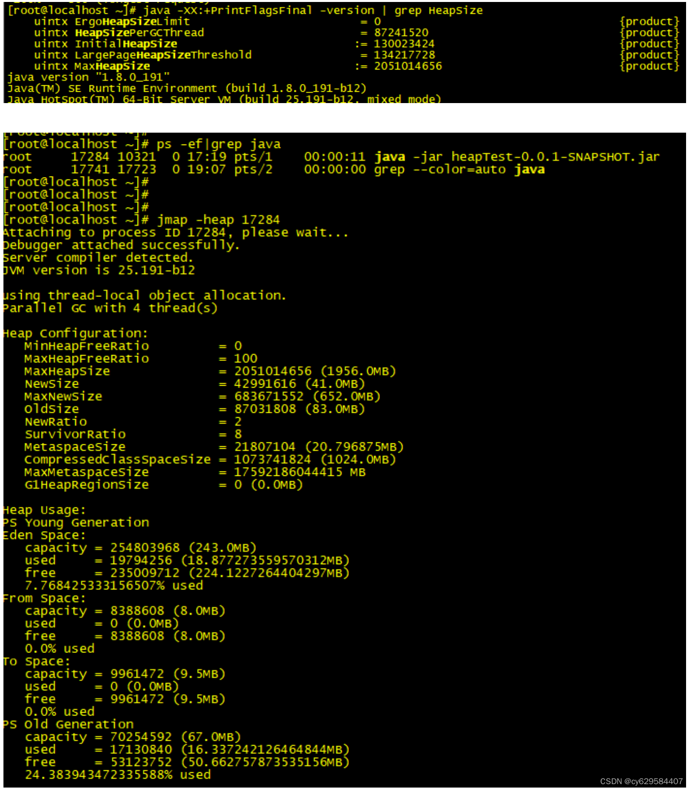 通过命令,我们可以获得在这台机器上启动的 JVM 默认最大堆内存为 1953MB,初始化大