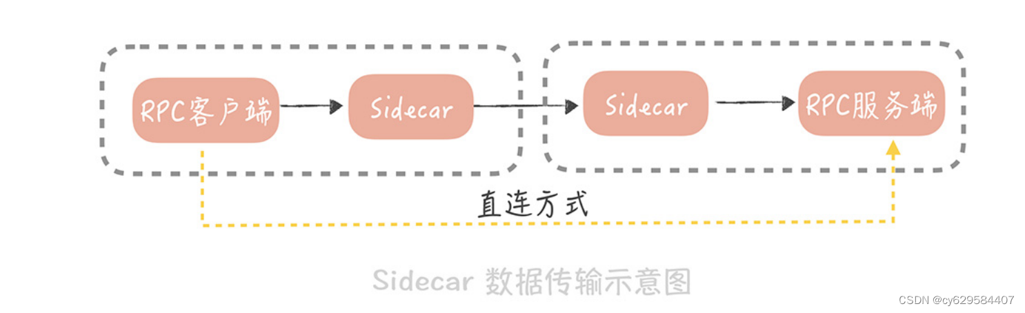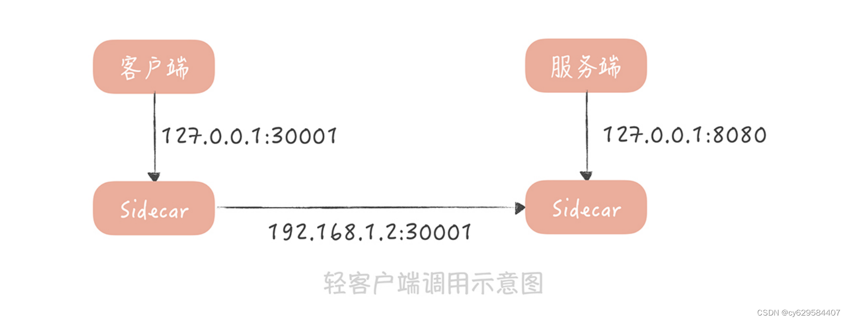 在这种形式下,RPC 客户端将数据包先发送给,与自身同主机部署的 Sidecar,在 Sidecar