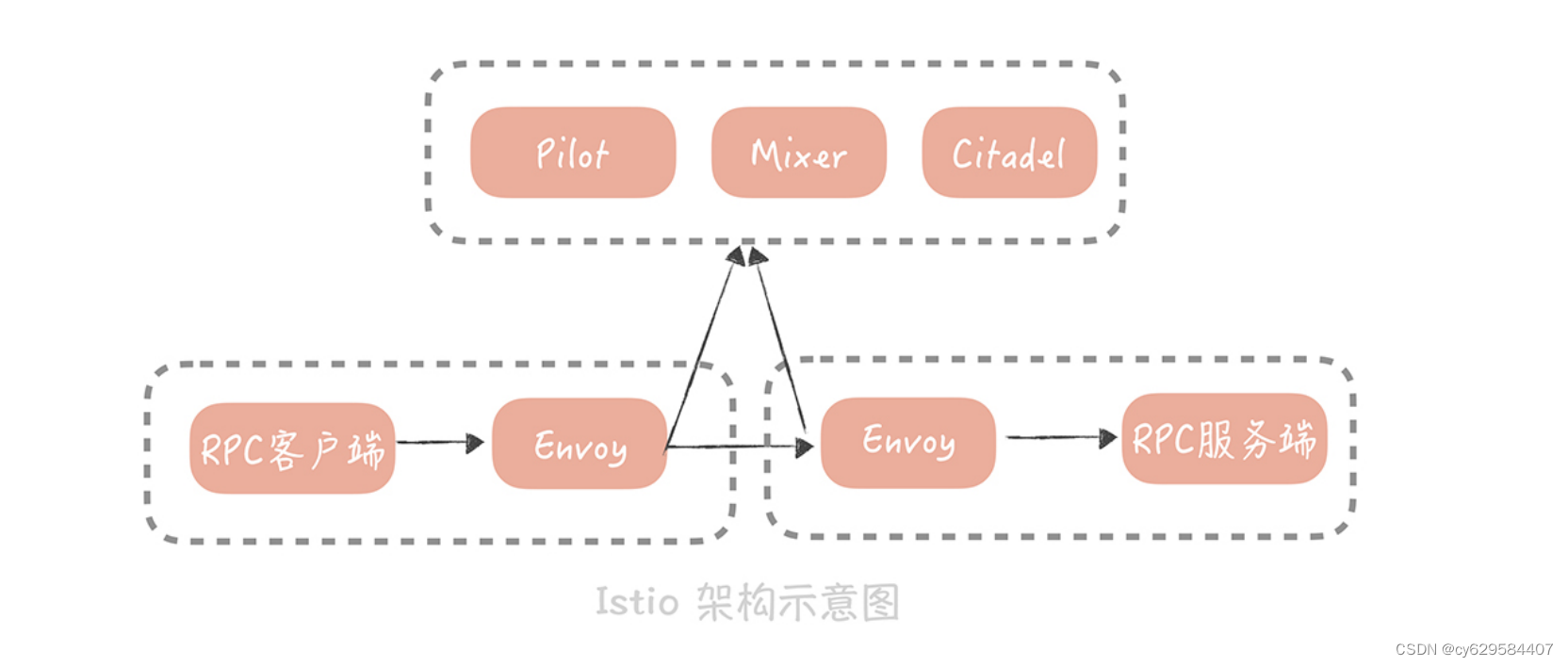 它将组件分为数据平面和控制平面,数据平面就是我提到的 Sidecar(Istio 使用Envoy