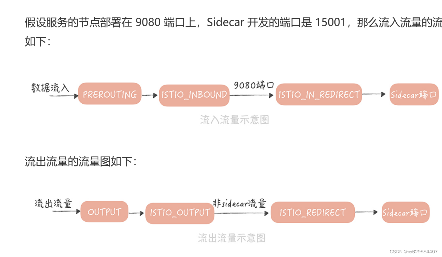 代理,也就是说,无论是数据流入还是数据流出时,都要将数据包重定向到 Sidecar 的端