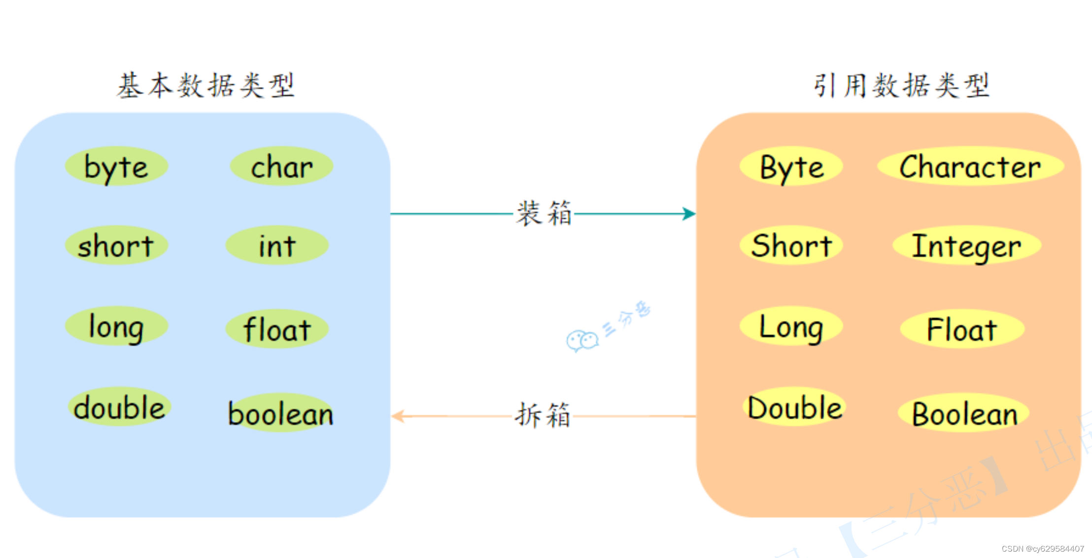 拆箱 :将包装类型转换为基本数据类型;
