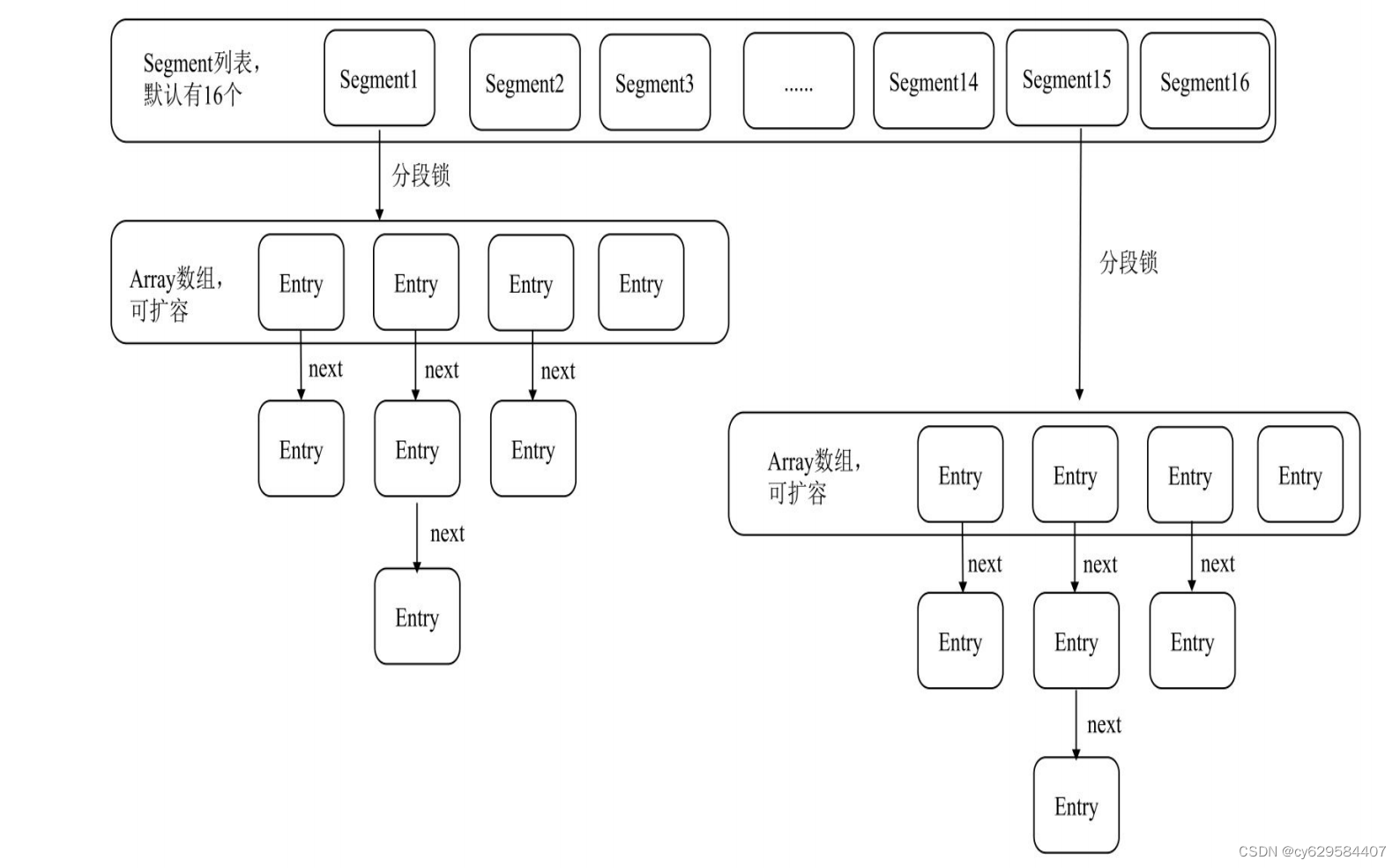 ReentrantLock并单独加锁,所以每次进行加锁操作时锁住的都是一个Segment,这样只要保证每个Segment都是线程安全的,也就实现了全局的线程安全。