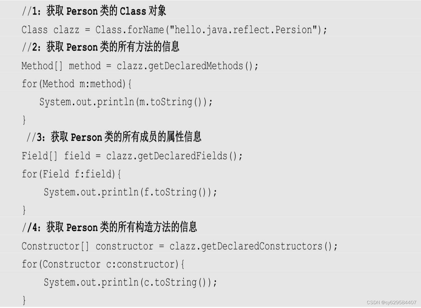 (1)获取想要操作的类的Class对象,该Class对象是反射的核心,通过它可以调用类的任意方